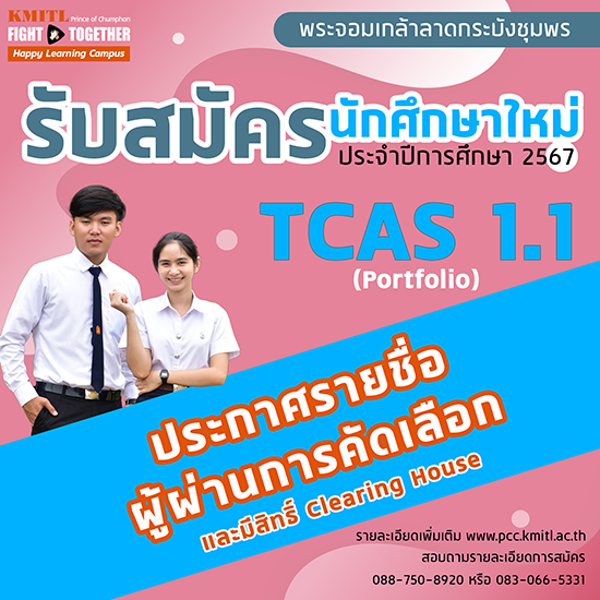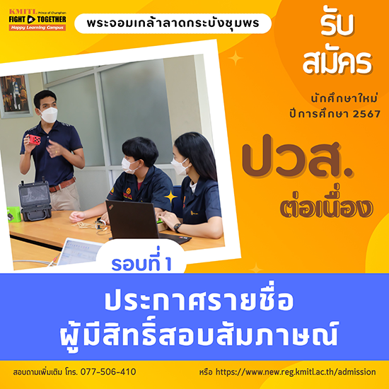ประกาศผู้มีสิทธิ์สอบสัมภาษณ์ระดับปริญญาตรี (สอบตรง-ปวส.) รอบ1 ปีการศึกษา 2567