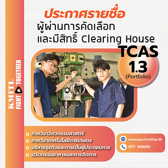 Clearing House ผ่านระบบ ทปอ. https://student.mytcas.com/ ภายในวันที่ 7 – 8 กุมภาพันธ์ 2566