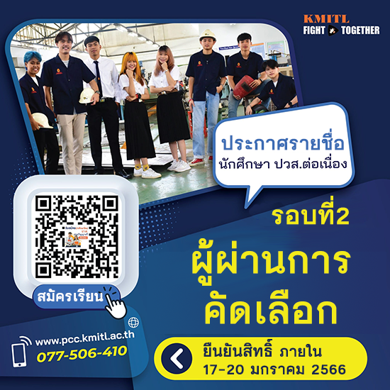 ผู้ผ่านการคัดเลือกเข้าศึกษาต่อ ปวส.ต่อระดับปริญญาตรี สอบตรง ปี2566 รอบที่ 2
