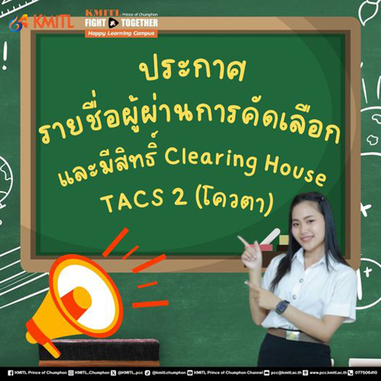 ประกาศรายชื่อผู้ผ่านการคัดเลือก และมีสิทธิ์ Clearing House TCAS2 (โควตา) Read More »